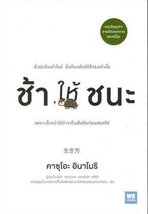 เนื้อหาย่อ : ท่ามกลางวิถีชีวิตที่เร่งรีบวุ่นวายในปัจจุบันคุณอาจคิดว่าคที่ก้าวไปข้างหน้าอย่างรวดเร็วจะถึงเส้นชัยก่อน แต่ คาชุโอะ อินาโมริ นักธุรกิจชื่อดังของญี่ปุ่นกลับบอกว่านั่นเป็นความเข้าใจที่ผิดเพราะจริงๆแล้ว ยิ่งช้ามากเท่าไหร่ ก้ยิ่งมีโอกาสประสบความสำเร็จมากเท่านั้น