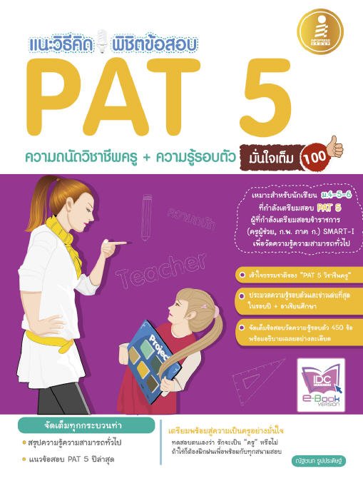 เนื้อหาย่อ : หนังสือแนะวิธีคิด พิชิตข้อสอบ PAT 5 + ความรู้รอบตัว มั่นใจเต็ม100 เป็นหนังสือที่รวบรวมสาระสำคัญในการ เตรียมสอบPAT 5 วิชาชีพครู ให้มีความพร้อมและรอบรู้มากที่สุดจากเหตุการณ์ข่าวสารในรอบปีและหลายปีที่ผ่านมาให้มีความแม่นยำและสามารถนำไปใช้ประยุกต์ในการทำข้อสอบทั้งสอบ PAT 5 สอบบรรจุข้าราชการ สอบครูผู้ช่วย Smart-1 และอื่นๆที่เป้นส่วนของการทดสอบความรู้รอบตัวและเหตุการณ์ปัจจุบัน พร้อมทั้งสรุปใจความหลักของอาเซียน (AEC)ไว้อีกด้วย