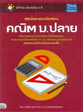 เนื้อหาย่อ : คณิตศาสตร์ที่ใช้สอบในส่วนของสายวิทยาศาสตร์การคำนวน วิทยาศาสตร์สุขภาพ และวิทยาศาสตร์ทั่วไป โดยจะเป็นการรวมคณิตส่วนพื้นฐานและเพิ่มเติมเข้าด้วยกัน ซึ่งเป็นวิชาที่ใช้ในการสอบหลายสนาม เช่น O-NET PAT 1 9 วิชาสามัญคณิต 1 (พื้นฐาน-เพิ่มเติม) ดังนั้น จึงเป็นส่วนสำคัญ และทำให้เราสามารถเก็บคะแนนได้ดีขึ้นหากเรารู้และเข้าใจหลักการ สำหรับหนังสือคณิตศาสตร์เล่มนี้จัดทำขึ้นเป็นสี่สีเพื่อให้ผู้อ่านได้เห็นภาพและเข้าใจ เนื้อหาได้ง่ายขึ้น เหมาะกับการอ่านเพื่อเตรียมสอบแข่งขันเพื่อศึกษาต่อในระดับมหาวิทยาลัยอีกทั้งยังมีแนวข้อสอบพร้อมเฉลยละเอียดอีกด้วย